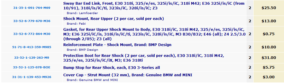 Looking to change suspension on my 87is. needs pretty much everything dealing with suspension along with lowering springs. Anyone have any input on Pelican Parts suspension kits? Stage 2 is almost 1k. i dont know whether Pelican is a reliable company to get these parts from . so i ask the e30 community if this would be a good choice. any thoughts?..