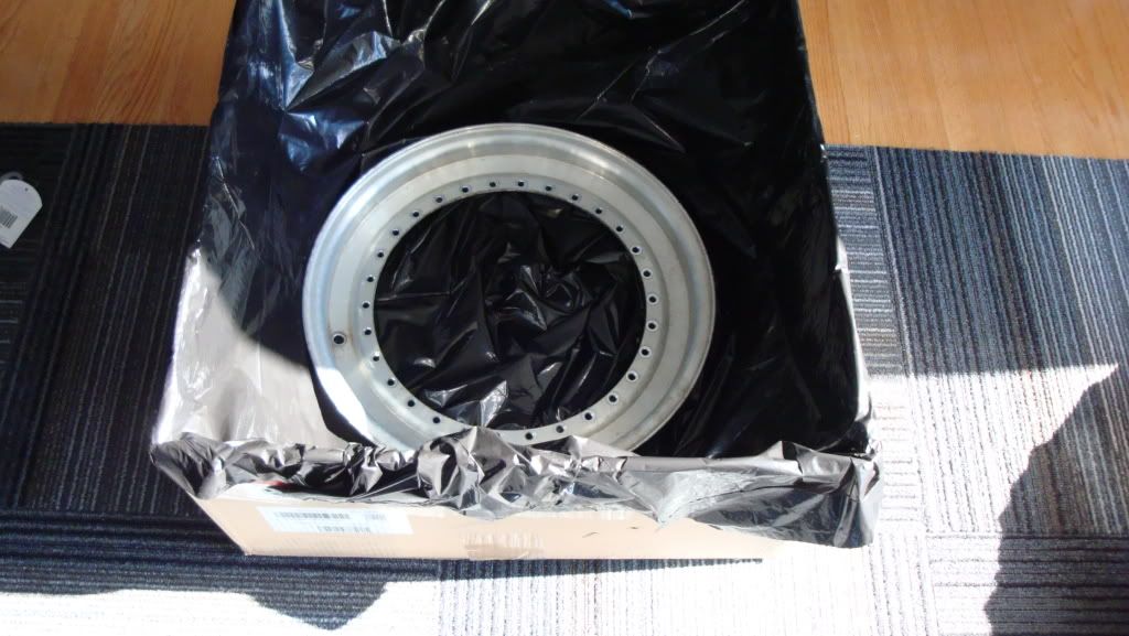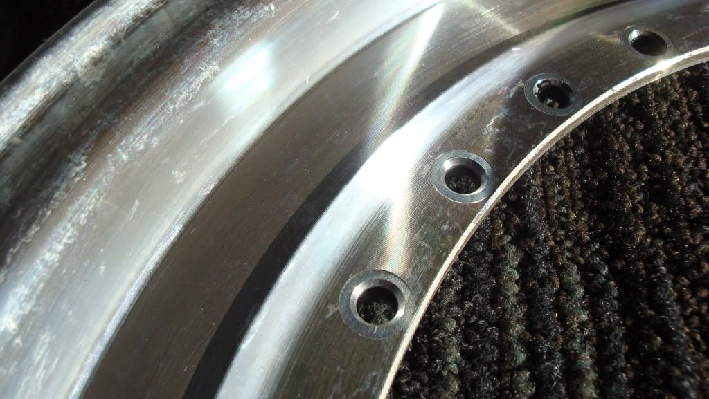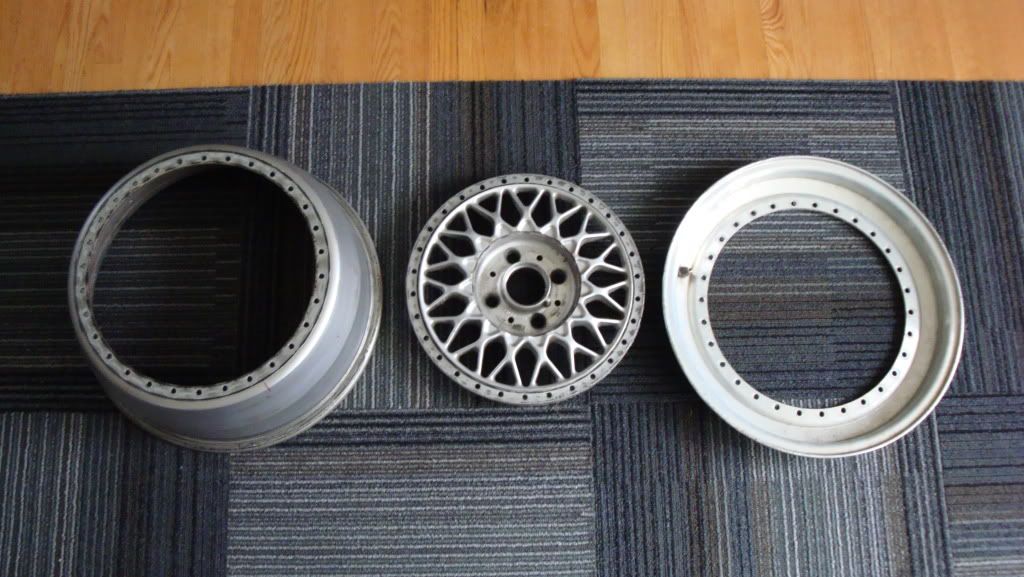 In pieces: (this is where you use the rubber mallet) Also, before I seperated them, I marked them with a permanent marker, indicating wheel # and where they had been aligned (drawing a line across all three pieces)