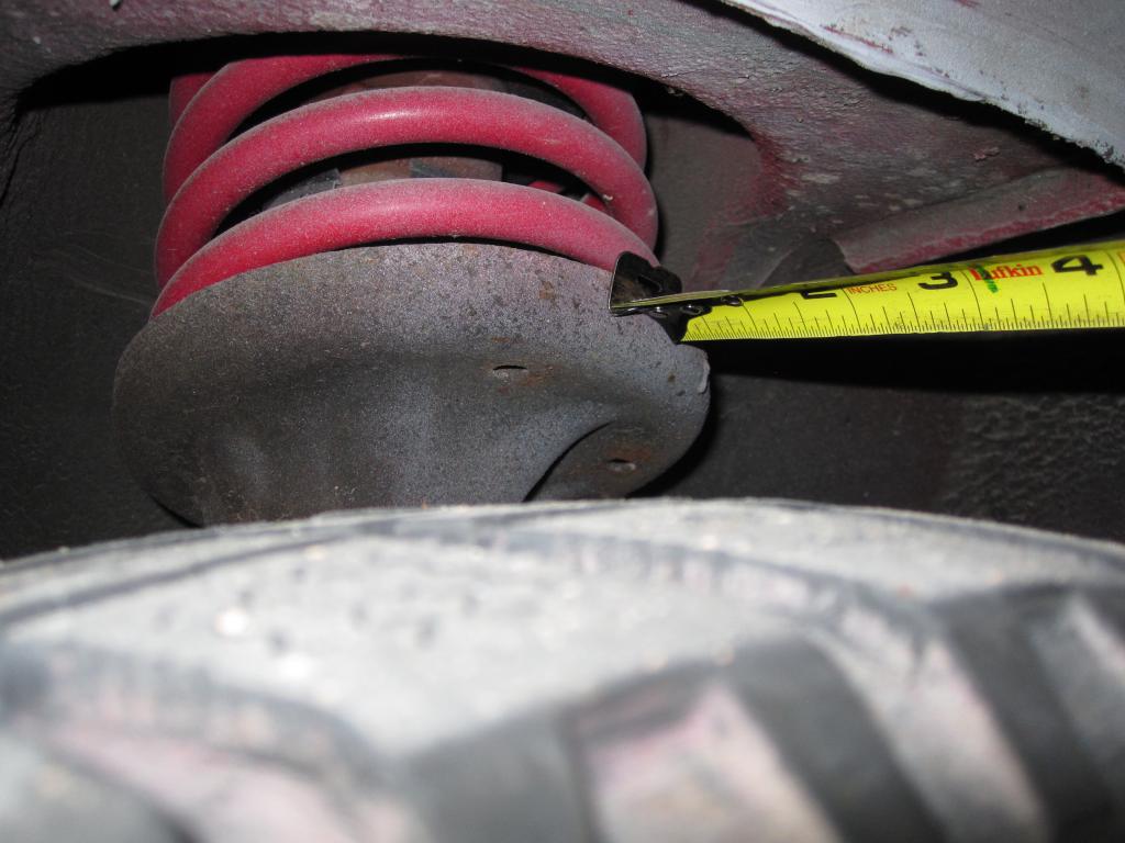Front: From the spring bottom mount to the inner fender lip (see pic)