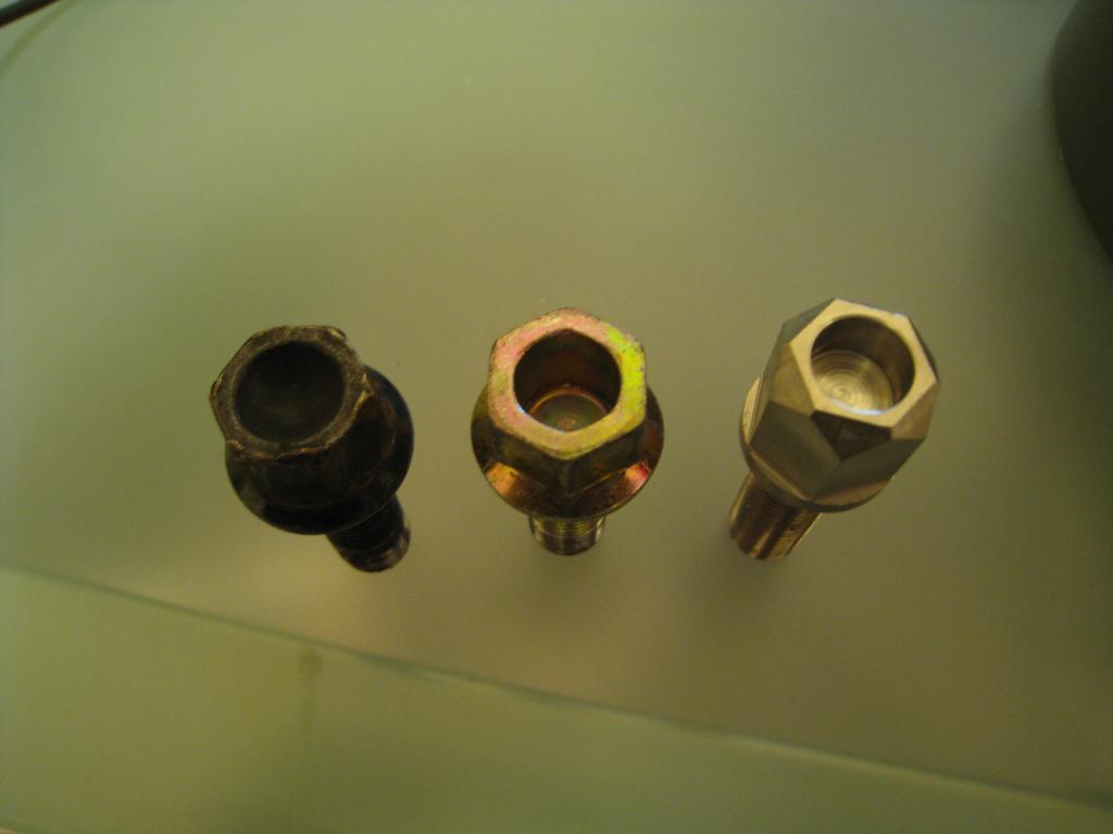And here's some pictures of the titanium lug bolts vs standard bolts. These are the 27 mm titanium bolts. He's got 33 mm too but I bet they only weigh a gram or two more.