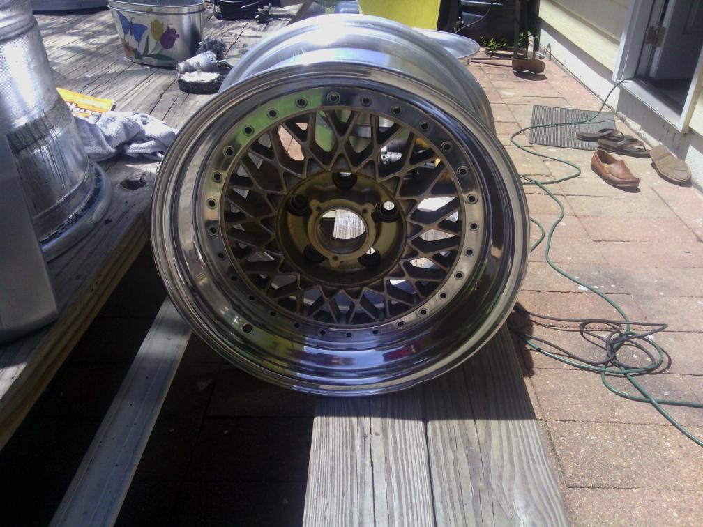 Wheels are DONE! powdercoat came out awesome! not sure if you guys can see the metallic flakes it has on them but none the less they are awesome...but now that I finished these wheels a very good deal on a 1jz came up so I might put these up for sale. Not sure of price as of yet, It does have all the center caps! and believe me these center caps are almost impossible to find! Specs are as follow : 16 x 9.5, 5 x 120 +20 offset.Comment
