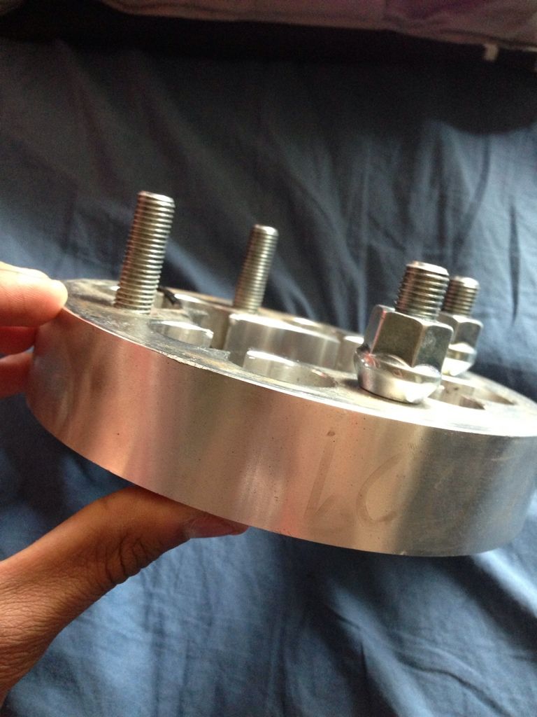 Well I'm 95% likely going to need to get my adapters machined down a little bit (offset right now is at -2, 7.5" wheel, 205/45/17). But I can't machine the back, and the front has studs sticking out. Do they just slide out after a few taps with a mallet? I'm pretty sure they're adaptec's, and any help would be appreciated. The fronts may be fine, but the rears will most likely need to be machined to fit. And here's a couple pics: