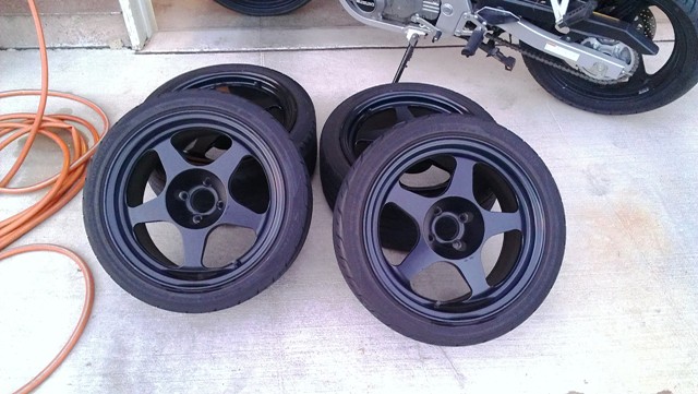 Most 225/45/16s will fit with just a basic rear fender roll. May I suggest the Dunlop ZII.I was thinking about doing this as well...got any pics of this done with fitment? Did you make a jig to drill with or had them done?.....