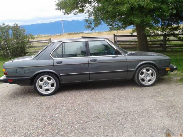 "1987 BMW 535i 4door, automatic, sunroof, am/fm cd, leather. This car is in terrific condition inside and out, has not issues. It comes with 3 sets of tires and rims, aftermarket, studded snows and stock. This is a great little car and is ready for its forever home."
