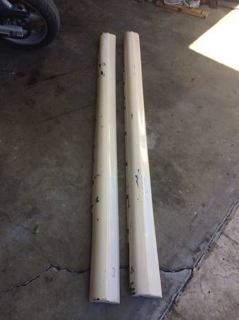 They are a tan color of some sort. Scratches here and there but in good condition overall. Sand, prime, paint and mount.
