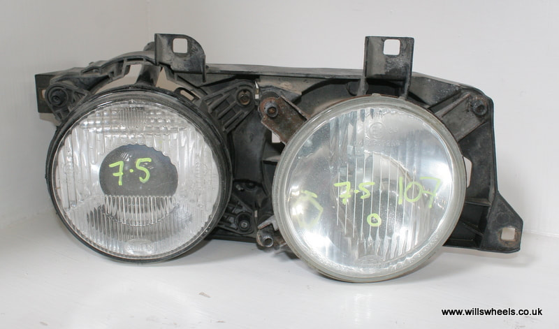 The Euro lights offer better light dispersion, and are more aesthetically pleasing according to general consensus. They use H1 bulbs along with a push-fit 5w sidelight/city light located in the low beam top centre. The bulbs are sometimes included but never guaranteed, and the caps and wiring pigtails are included. To fit to a US/other non-equipped car, you will need to splice the pigtails/connectors in - a simple job, for which there are DIY guides on the forum.
