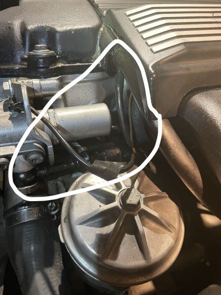 yeah, there's the VANOS solenoid, the oil feed line to VANOS, and the intake cam position sensor in behind.