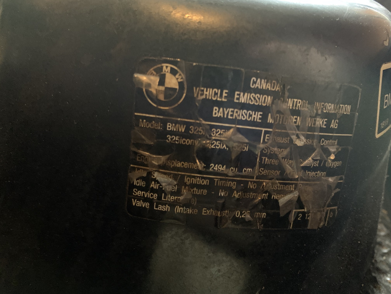 Getting it registered is seeming impossible. It's not a touring so should be the same as the US spec 325i/is but without the CA emissions sticker. It has a Canadian emission sticker but the same engine and cat as American car. I think it should pass smog but seems like that may not be the issue. My mechanic said it's a North American car but I have no way to prove that to the DMV.