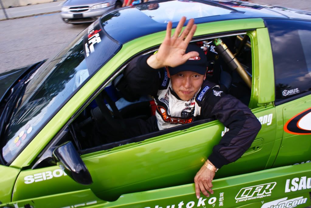 somehow this occured, and he kept the drift all the way back through the course. something tells me this isn't a new fad...