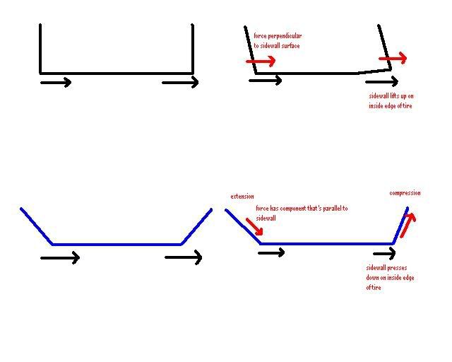 hopefully I don't have to explain air pressure inside of the tire and normal acceleration of a rotating object to you.