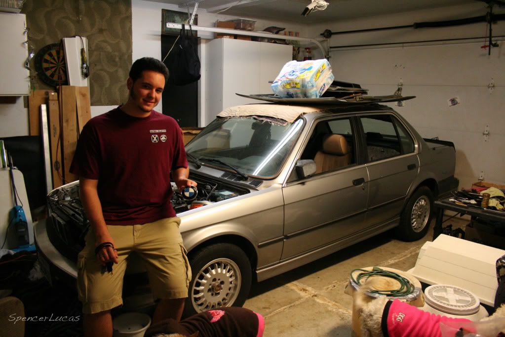 hans and my e30 and e21, e21 on jack stands because the driveshaft is currently out and being repaired :)