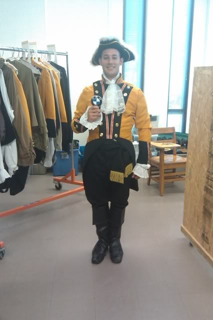 Hans joins me for costume fittings! (First is for a soldier in Il Barbiere di Siviglia)