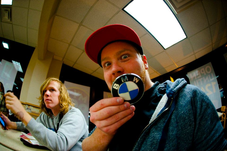 A corner of my room where I framed stickers I took off of old E30s, I have another 15 or 20 on the other side of my room.