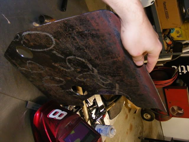 OK, now on the plate itself, 1/8" thick steel, rough cut to shape: