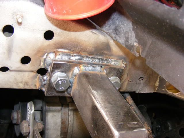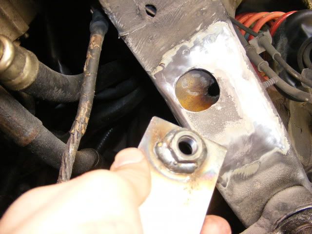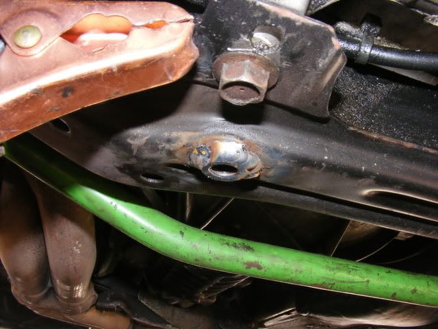 To hold the back of the plate I welded two nuts into holes in the subframe:
