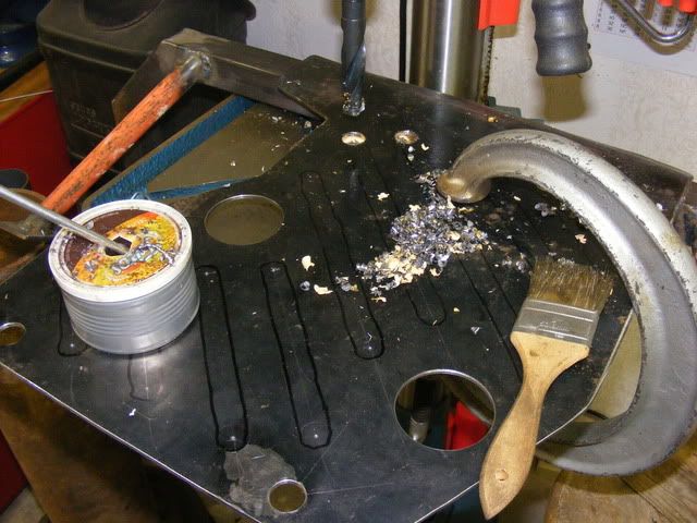Gusset bars welded to main bar, and holes being drilled for air slots: