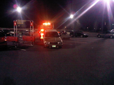 Took almost an hour to get the car moved in and out and onto the tow truck.