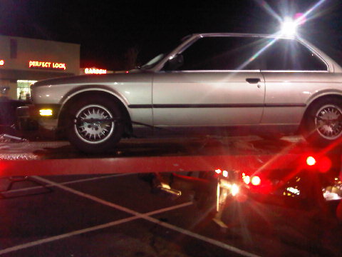 So..no way to get the car to run. (325e). Called a tow truck and...60mm drop front and 40mm drop ...a piece of apper would have barely fit between exhaust and front lip wihtout using some wood to lift the car beign pulled up.