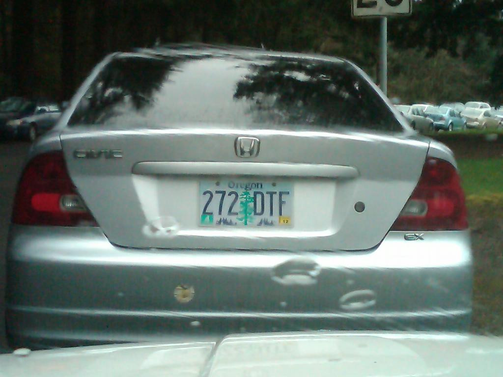 a completely unintentional license plate that happens to make you laugh to yourself while your driving?