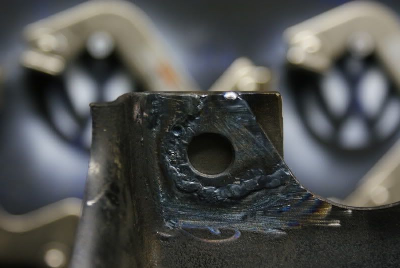 my diff almsot fell out while at a local track during drift practice. two bolts jumped ship, another ripped out as you can see. and the last one was loose but still hanging on. :???: i got all new bolts 5mm longer and used blue loctite on all of them!