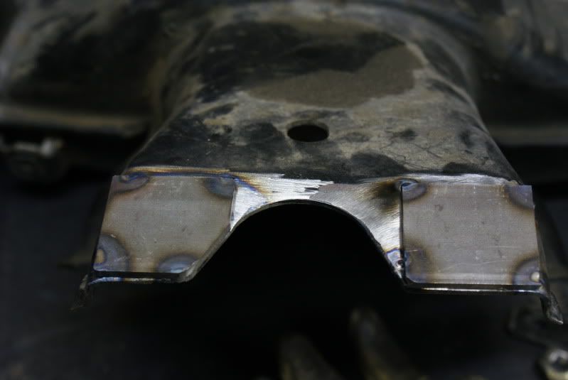 Grinded down the fins and mount area and welded in the holes.. then hit it with some buffing pads.