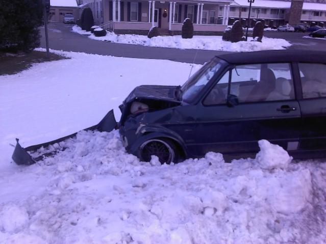 We always kind of joked about if we where to ever get into a accident in a mk1 rabbit we would just crumble into a ball, but surprisingly it held up very well. Then wind shield didn't even crack.