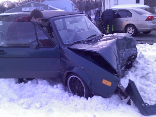 Sucks about the accident, but those cars give their lives to save the occupants. Never talk down on a Rabbit! haha
