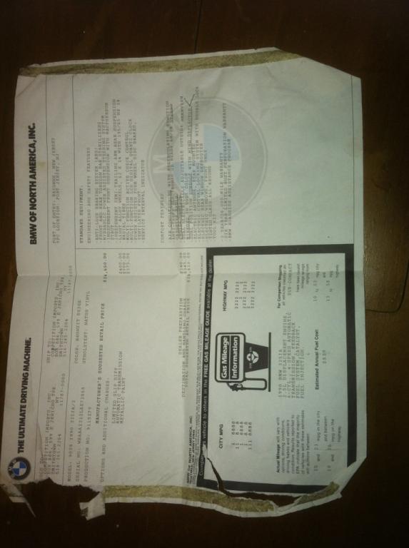 i was digging around the car today because it kinda nice out and i found all the original services records, the window sticker for $26,610 and some other neat stuff. ill throw up some pics later just thought it was cool too see that it came form white plains ny.
