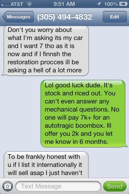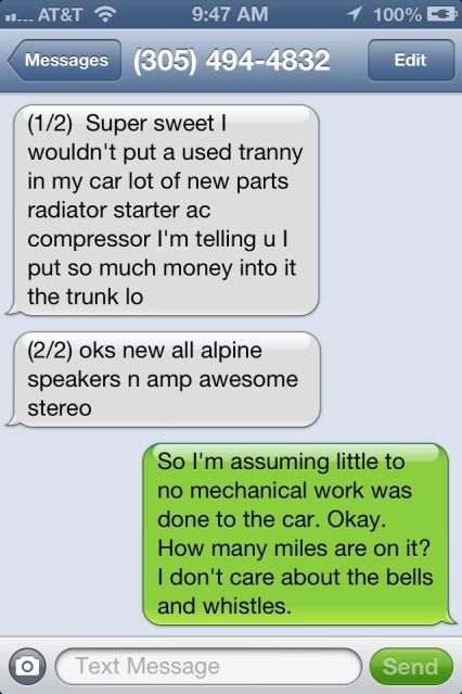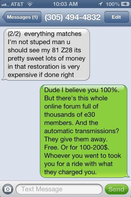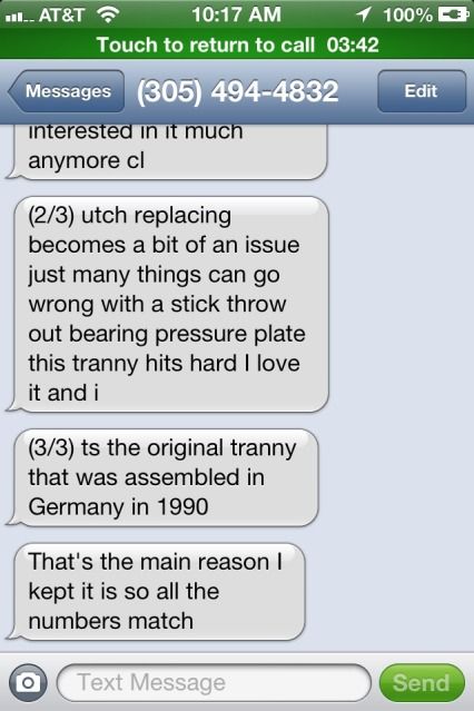 So it's the original transmission...but also new? And I enjoy how his tone totally changes when you mention you have plenty of money. Lulz.