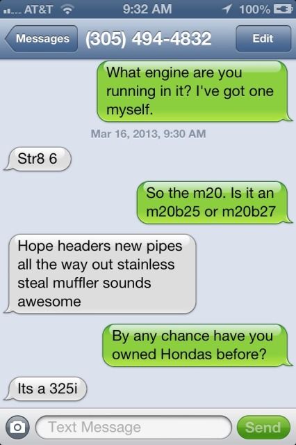 1985 M10b18. 70maybewhpoffury. Over engineered S50b30 murica BBQ swap in progress.