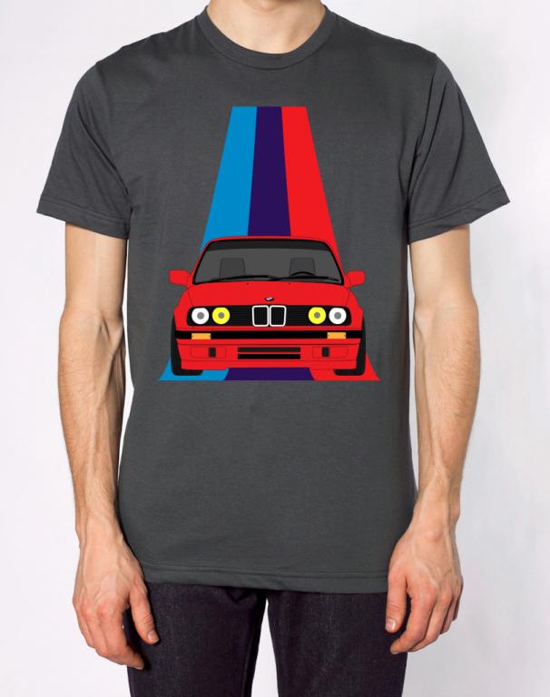 One direction I was thinking of taking this was instead of the simple stripes having the motorsport stripes twist and turns from the neck area as if they were a mountain road and end under the E30 growing bigger as they reach it.