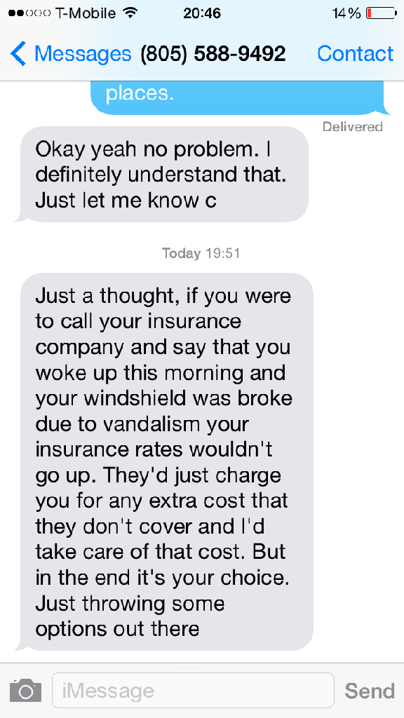 Now you have another thing to add to the estimate. Rental car while your car is down and un drivable. Or do the unsafe and potentially ticketable thing. Kick the front windshield out with both legs while sitting in the drivers seat.