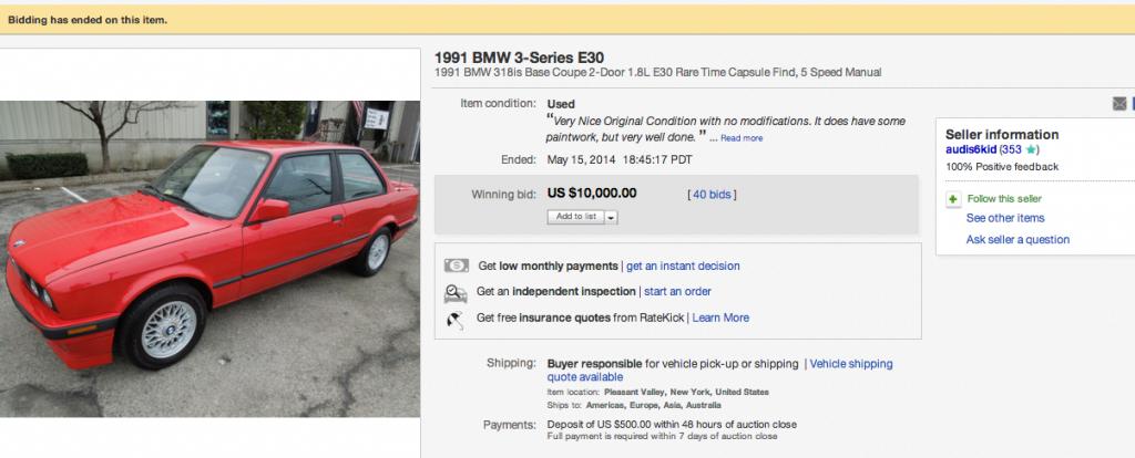Okay, I kind of take that back. However, I wouldn't say that e30's are thriving and I certainly wouldn't say that the 190e couldn't stand the test of time. E30s rarely pop up for sale here and when they do they often need something to make them reliable, but there's always a 190e for sale (for a while there were like 4 at once) and they're all pretty solid. When it comes to other '80's-'90's cars I would say the average e30 really isn't looking any better than other stuff that's on CL from time to time.I totally disagree with this. Show me any other 1988 vehicle that's still out on the road and thriving in many ways. For comparison purposes, go onto Craigslist and do a search for 1988 Mercedes 190e. Compared to the e30, there just isn't that much out there. In my opinion they just couldn't pass the test of time, unlike the e30.Leave a comment: