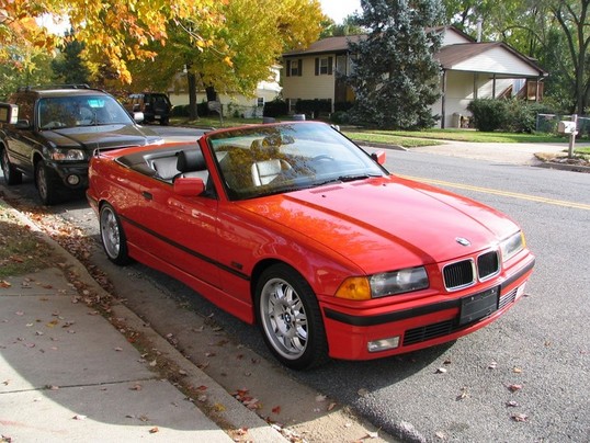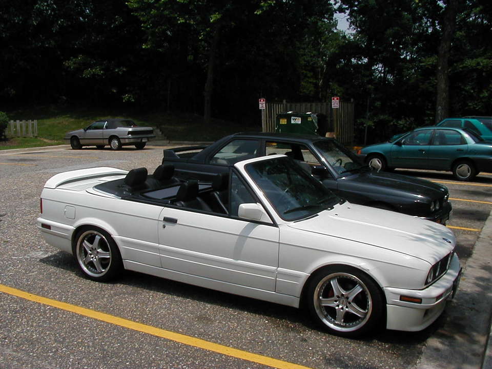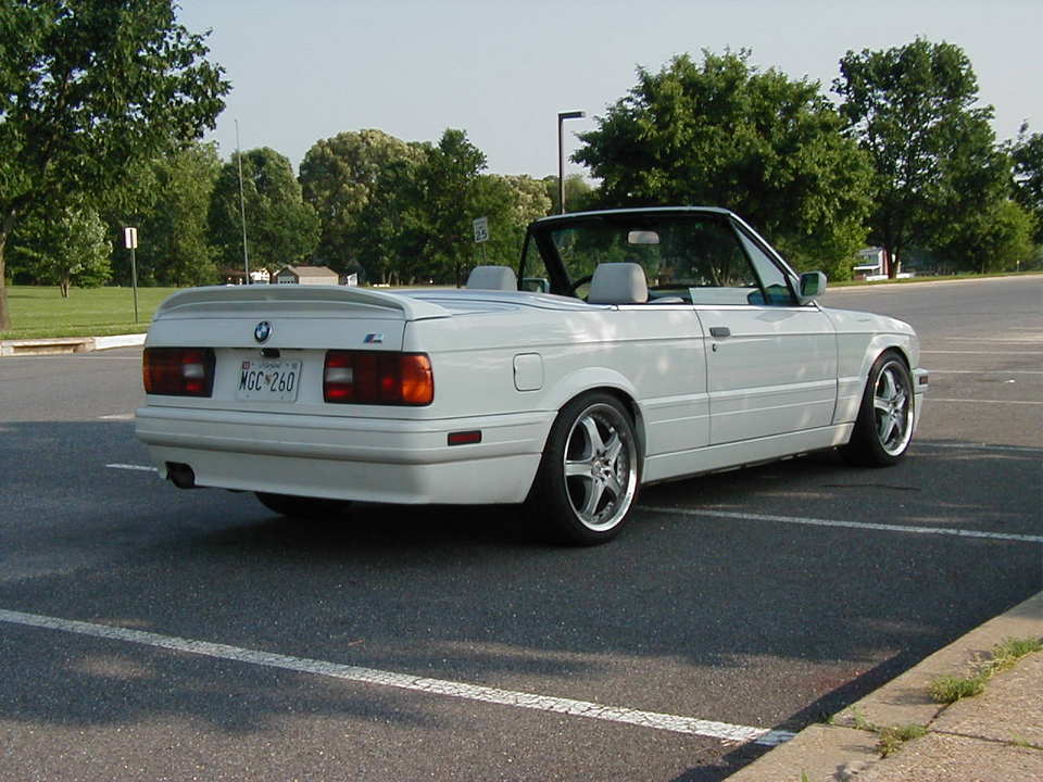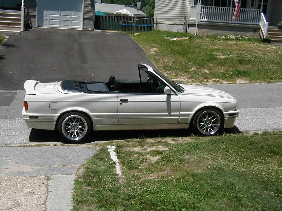 yes,it's a 92 cabrio mtech pkg ,i did a lot of stuff to like the obvious e30 m3 5 lug suspension swap(so i can swap wheels b/n my 90m3),swapped interior to all black,z3 steering etc...-i just pulled the motor/tranny to swap in an m50 and do a 5 speed conversion at the same time-right now the poor things on jackstands....my e36 vert is taking over my spring/summer top down chores