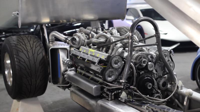 "So without doing much in the way of investigation or measurement, Groff picked up twin 1JZ engines yanked from early-’90s Toyota Supras, cut the blocks just above the oil pan gasket surface, and scratch-built a new crankcase out of TIG-welded 3/4-inch steel. “Where I got lucky is the head bolt pattern is symmetrical,” Groff tells me. “You can flip the head end-for-end. There are 13 oil drain-back holes in the block. Those are what I used to bolt the cylinders to the crankcase."