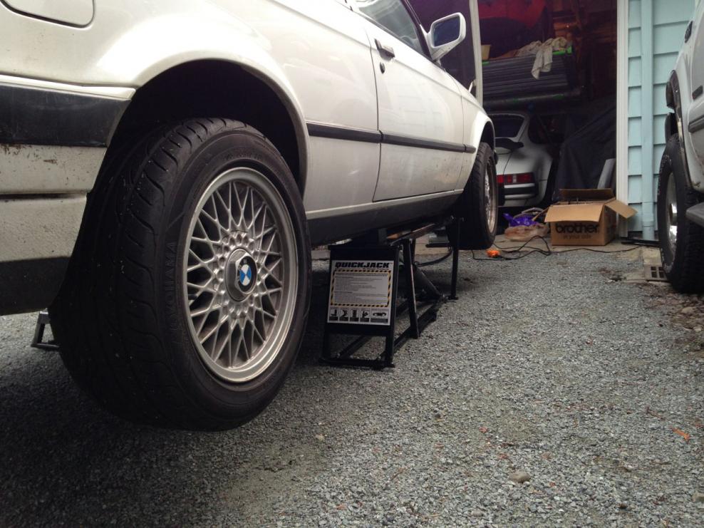Harbor freight low profile jack works perfectly fine for me. Lift one side, drain, lower it back down. The rest is done from the top.91 318is M50 swapped