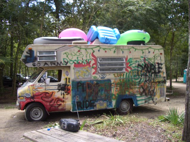 And probably my favorite ride. It's a '76 Dodge RV that my Mom gave me a few years ago. Its basically a rolling party machine. My friends and I take it out to Ginnie Springs up here in Gainesville, tailgate parties for the Bucs and Gators and a few concert weekends: