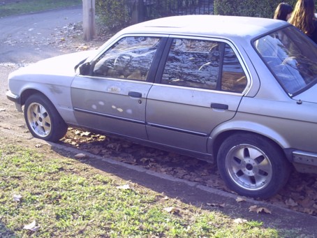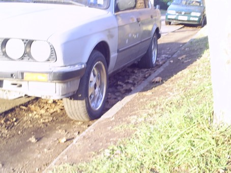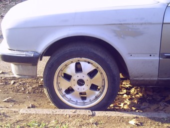 Ok, I was outside washing the E30, (I haven't had the time to go on priming it), and mi neighbor gets another car for his wife, a Kia Rio, it has these too big rims and he is there complaining how tough the tires are and how stiff the car feels, so i said "sell them to me", he said ok, payed US$ 75 and got them on the car.