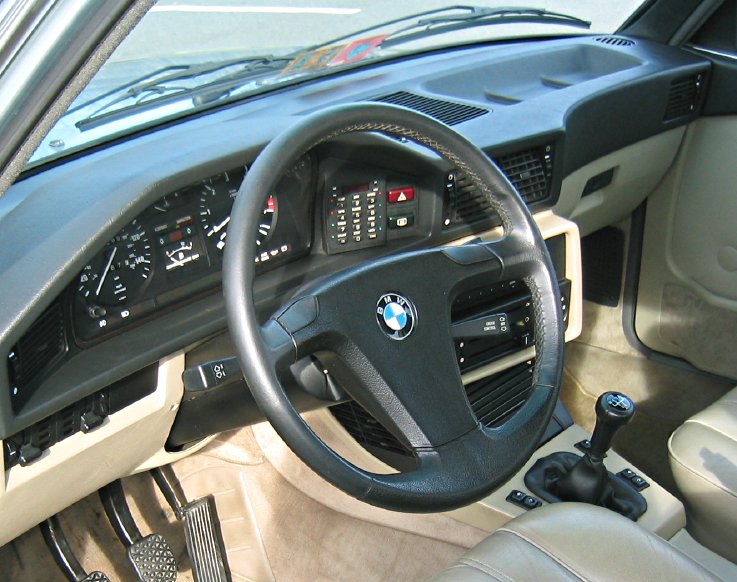 That's the wheel that I had in my '84 633csi. It's a bus wheel, like the rest of the stock US spec steering wheels. More fitting in an E23/24/28 than a little E30 in my opinion.