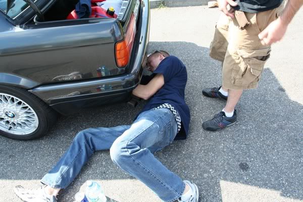 It wasn't long before we noticed the exhaust seemed to be dragging. So we made the first of many stops: