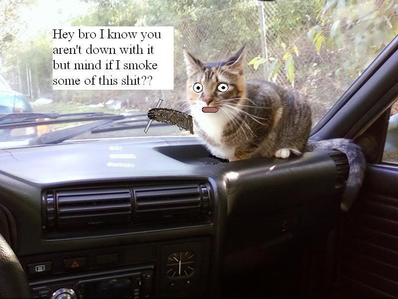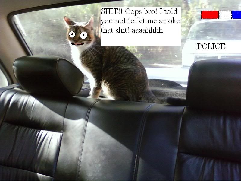 you actually drive with the cat loose in the car? doesn't he freak out and jump all over the place? Why would you take a cat anywhere? its not like you're going to the park or something like you would a dog.