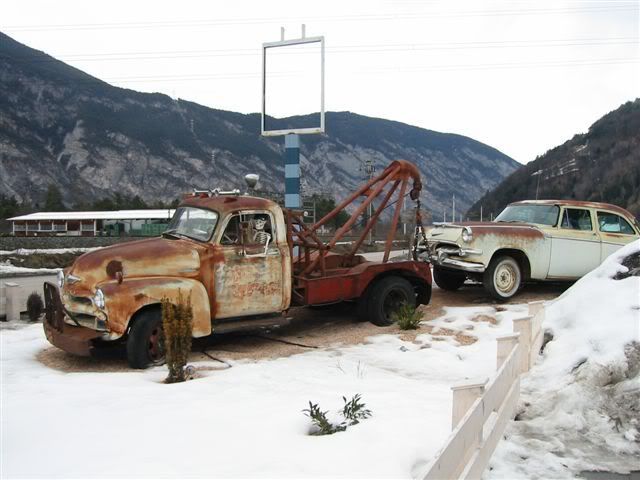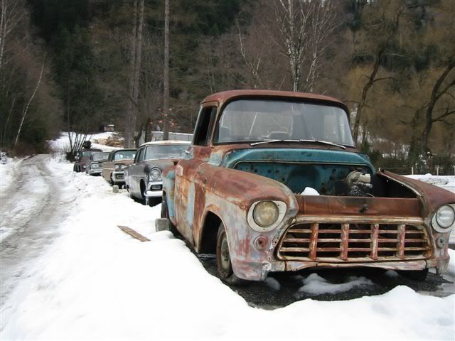 So, today I had to work at one of the other dealerships that my boss owns. The Service Manager there had worked at my workplace for a while so we know each other pretty well. He calls me up to desk and tells me I have to see some pics he took a few weekends ago while he was skiing.-- He has seen my 55 Chevy a few times when I took it to work, so he said he snapped these pics for me.