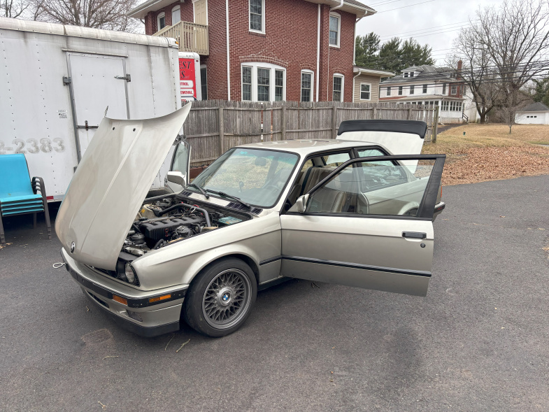 It took me 3 gas stops, and extra bathroom break, one stop for food, and in total 14.5 hours to get back from the Atlanta suburbs to my home in Philadelphia. (Every stop I checked the oil and inspected underneath the car for leaks/damage.) I went to sleep at 5 am, completing my 24 hours of E30 acquisition. I couldn't get it in my driveway since the car was so low. So I left it in the street, slept for 2 hours, and drove it out to the suburbs to my mom's house. There is sat until I could find time to raise up the coil overs and put some bigger tires on there.