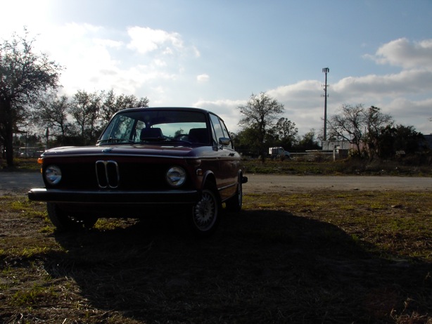 A little backstory: It's a 1974 2002tii that I acquired from a guy here in Mount Dora for $1600. The car had apparently been owned by an elderly gentleman in Mississippi, then he passed away and one of his relatives put the car in storage. That was sometime in the early 90's. Then a little over a year ago this guy here in Mount Dora(who happens to own a mint hellrot 850csi) purchased it with the intention to restore it for his wife. He never had the time to do so and put the car of for sale. Then a little less than a year ago I purhased the car from him. The car didn't run when I bought it, mostly just from having sat for such a long time. Thankfully though, the car was stored indoors and so the paint is in very nice shape for its age, as is the interior, no cracks at all in the dash. So I did a big refresh of the car to get it on the road. The engine appears to have been rebuilt. I have mostly new suspension under it. Bilstein sports, IE sport springs, new bushings all around, new ball joints, yadda yadda. The interior, which I regrettably don't have pics of at the moment, is rather dismantled right now, with all the carpet out, rear seat has no padding due to the old deteriorated hoarse hair padding, no A/C, no radio, etc. I've put in a set of E21 Recaros and plan on doing a major overhual of the interior this summer. Well then, enough of my ramblings, on to pics.
