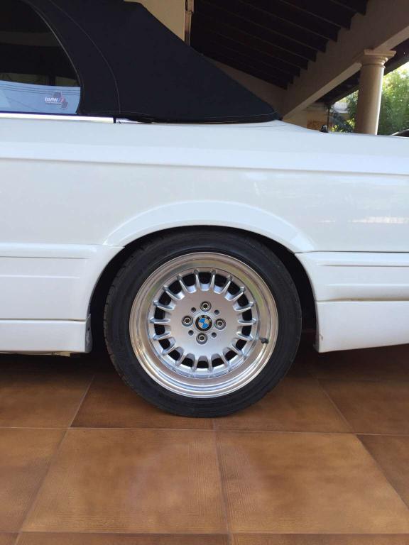 e38 style 5s filled and drilled to 4x100 with custom spinfab machined centers. 16x8 +23 with 10mm front and 5mm rear spacers. 205/50 Z1 Star Spec tires. Moderately clean car :pComment