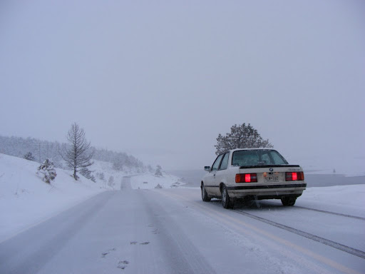 I had no idea My E30 was so awesome in the snow with those tires. I bet i can take on most Saabs!