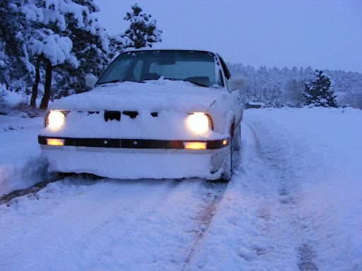 So starting last night it's been dumping snow relentlessly, So i decided to put the winter boots on the E30, (b-caps and studded snow tires) and then i found an un-trodden dirt road with a foot of snow over it, and blasted through it at about 60 mph.