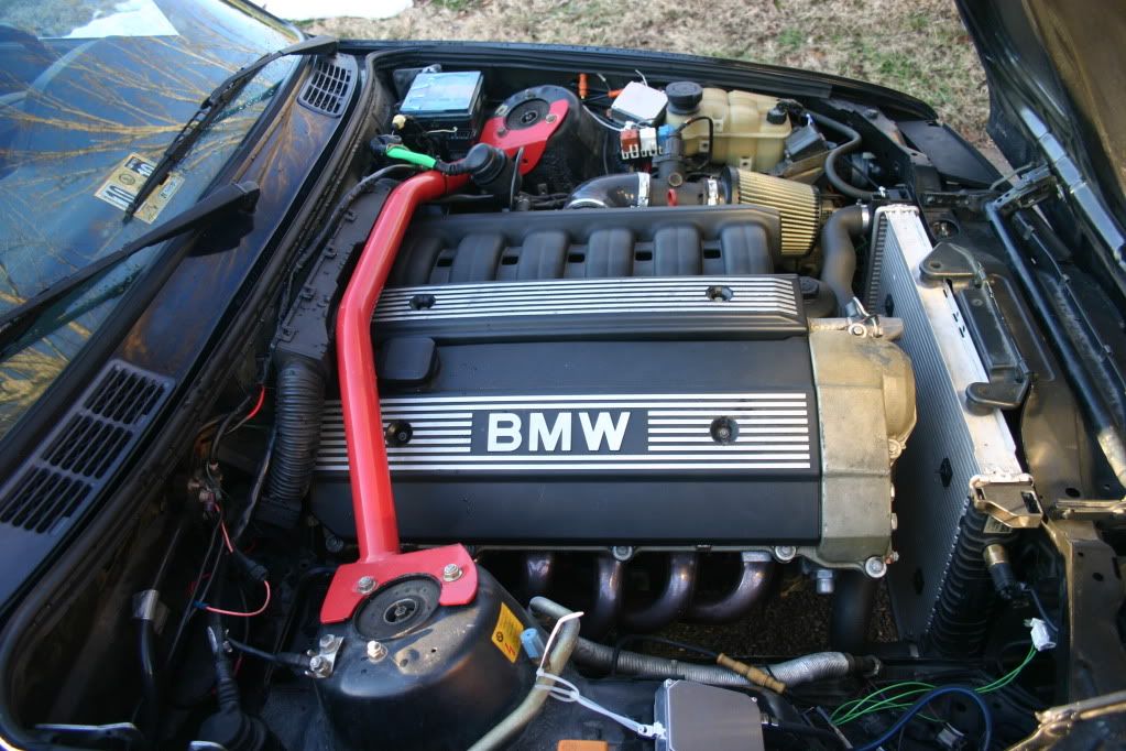 It finally warmed up enough to wash the car and snap a few pics. I've been driving the car with the m52 swap complete for a couple months now. I still need to clean some stuff up and actually get to repainting the whole car. Ignore all of the mess in the engine bay, i'll have it cleaned up shortly.