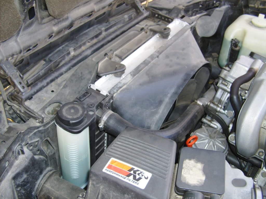 It had new waterpump, thermostat, fan clutch and rad (oem), rebuilt head, several oil pans (too low, now has an skidpad), some new hoses here and there and an alternator. it is an very healthy engine and pulls strong to the redline; it once maxed out at 142mph