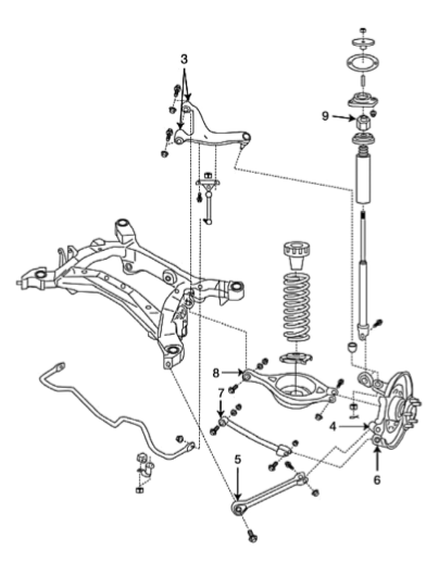 8. The spring bucket, also with a toe bolt. Or SPL makes a spring bucket with heim joint at the hub to adjust toe. True coilovers also the use of a spring bucket delete toe arm.